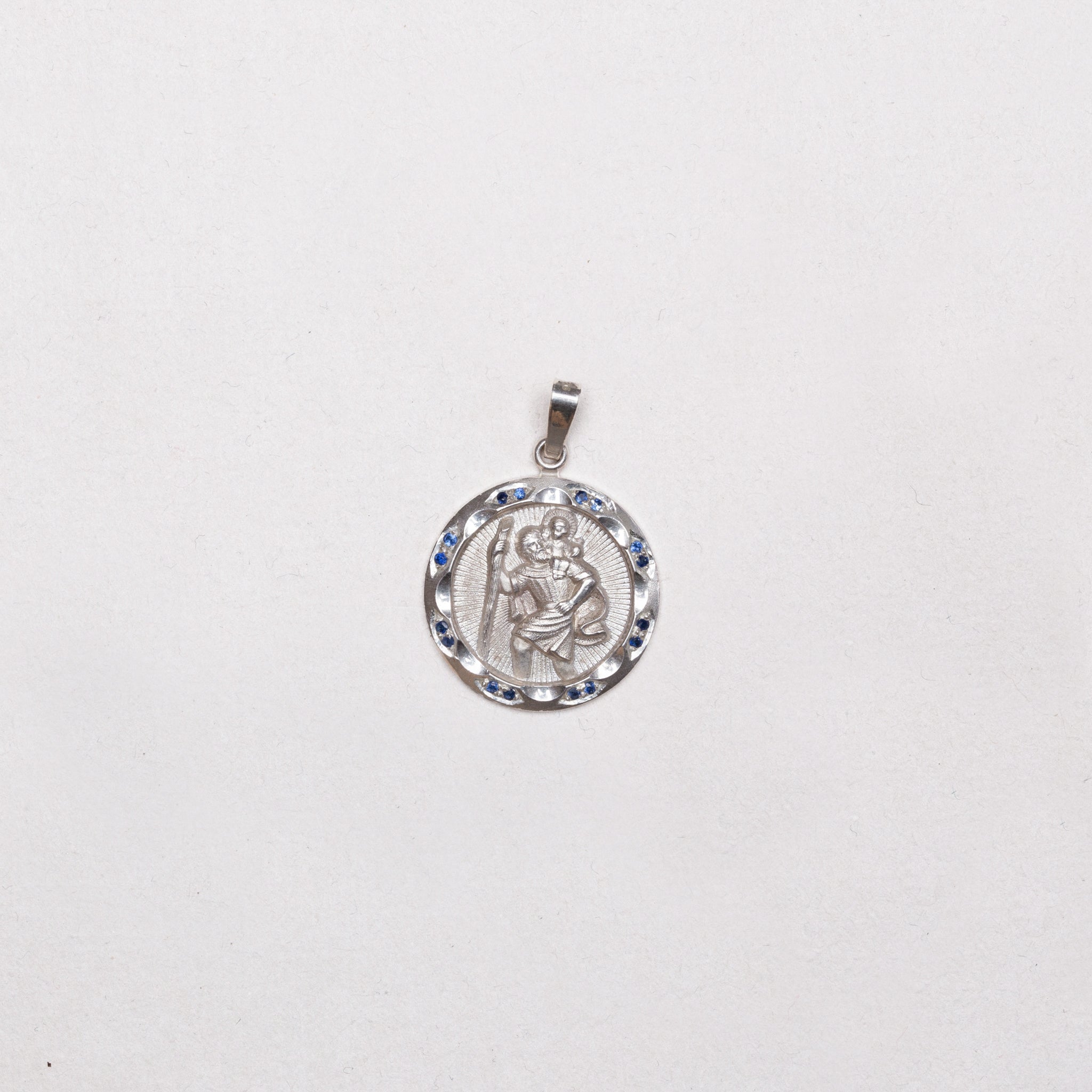 Rare Vintage Sterling Silver St. Christopher Charm Pendant with Sapphires