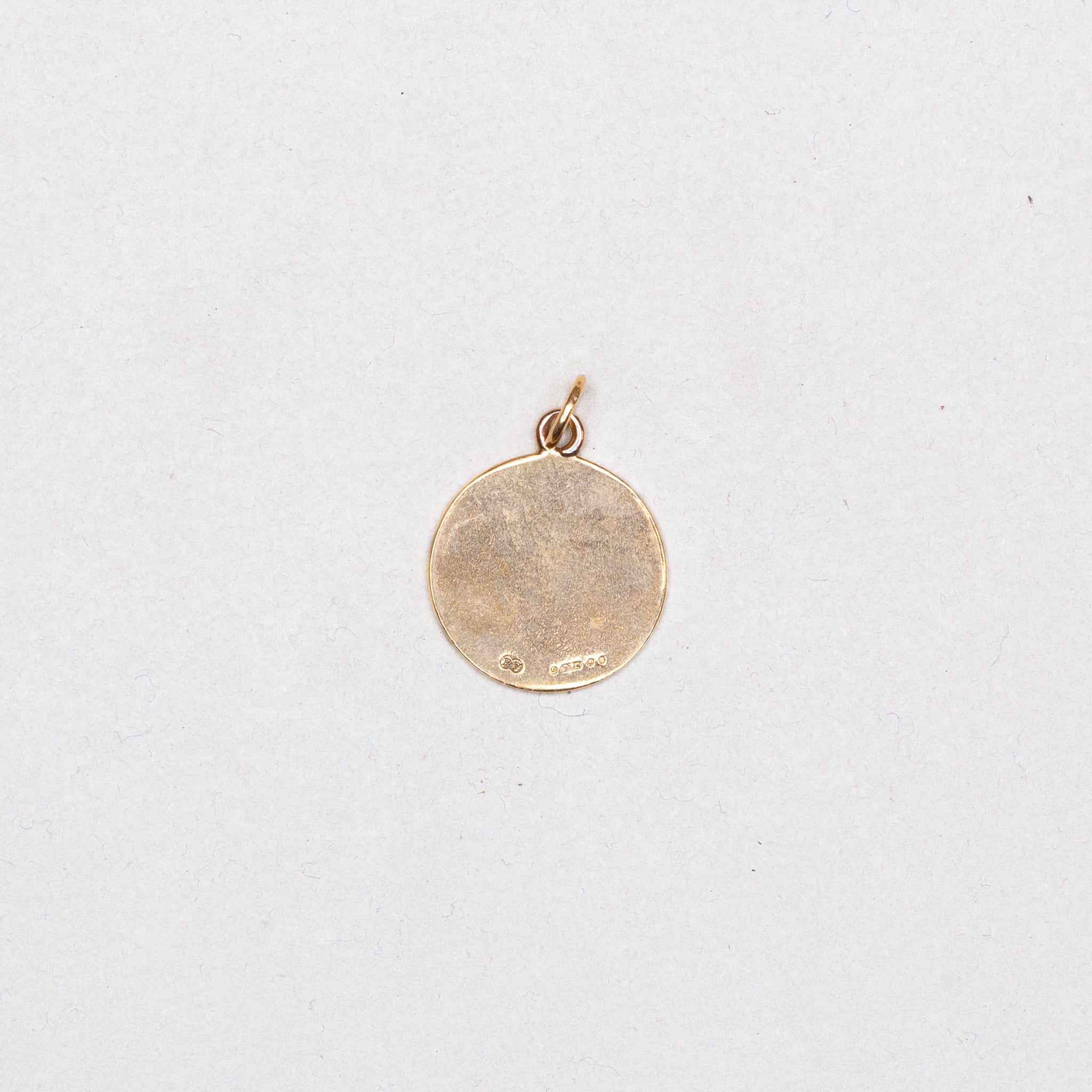 The pendant measures 15 mm in diameter with an 5 mm ring.