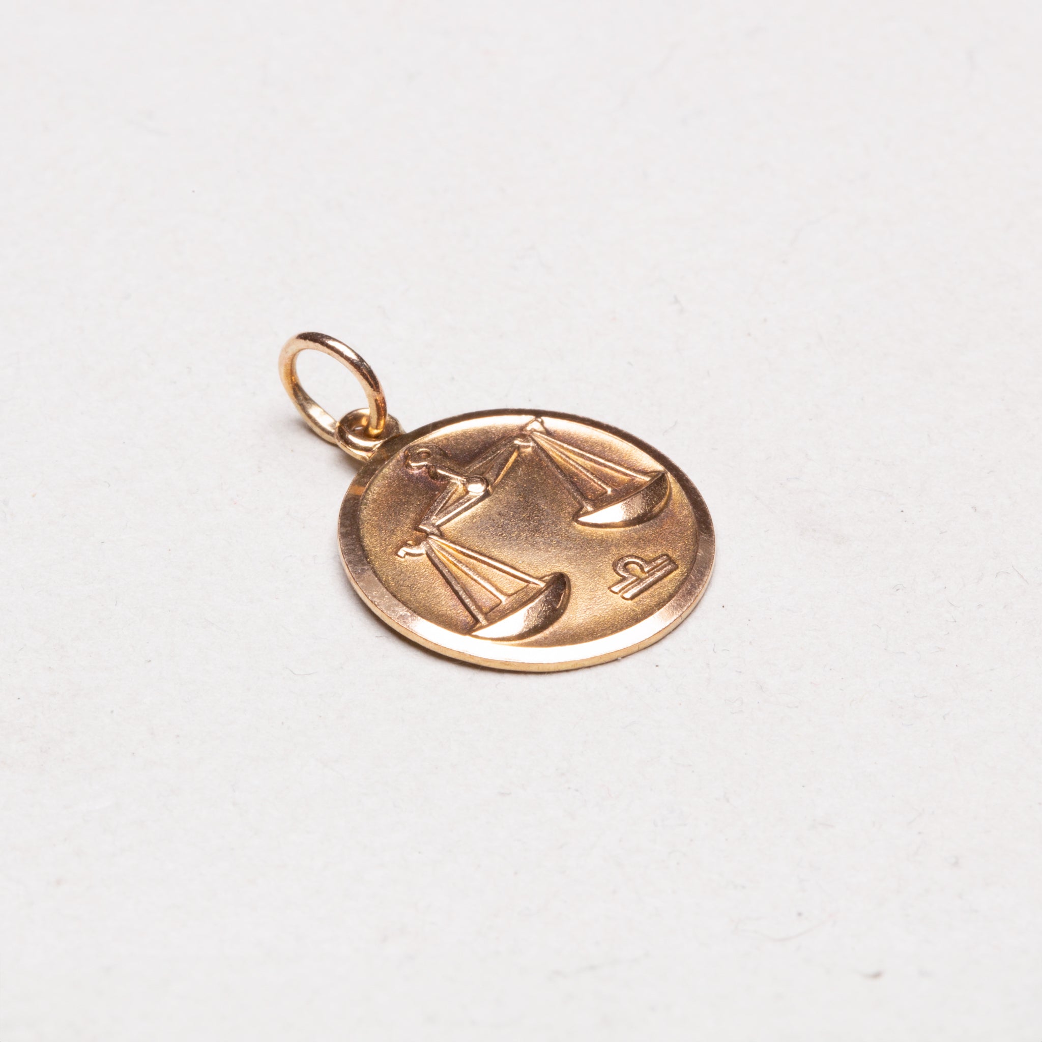 A beautiful 9ct gold Libra pendant charm, featuring a delicately crafted design of the libra enclosed within a circle frame. This beautiful piece is perfect for those born under Libra or as a meaningful gift for a loved one.