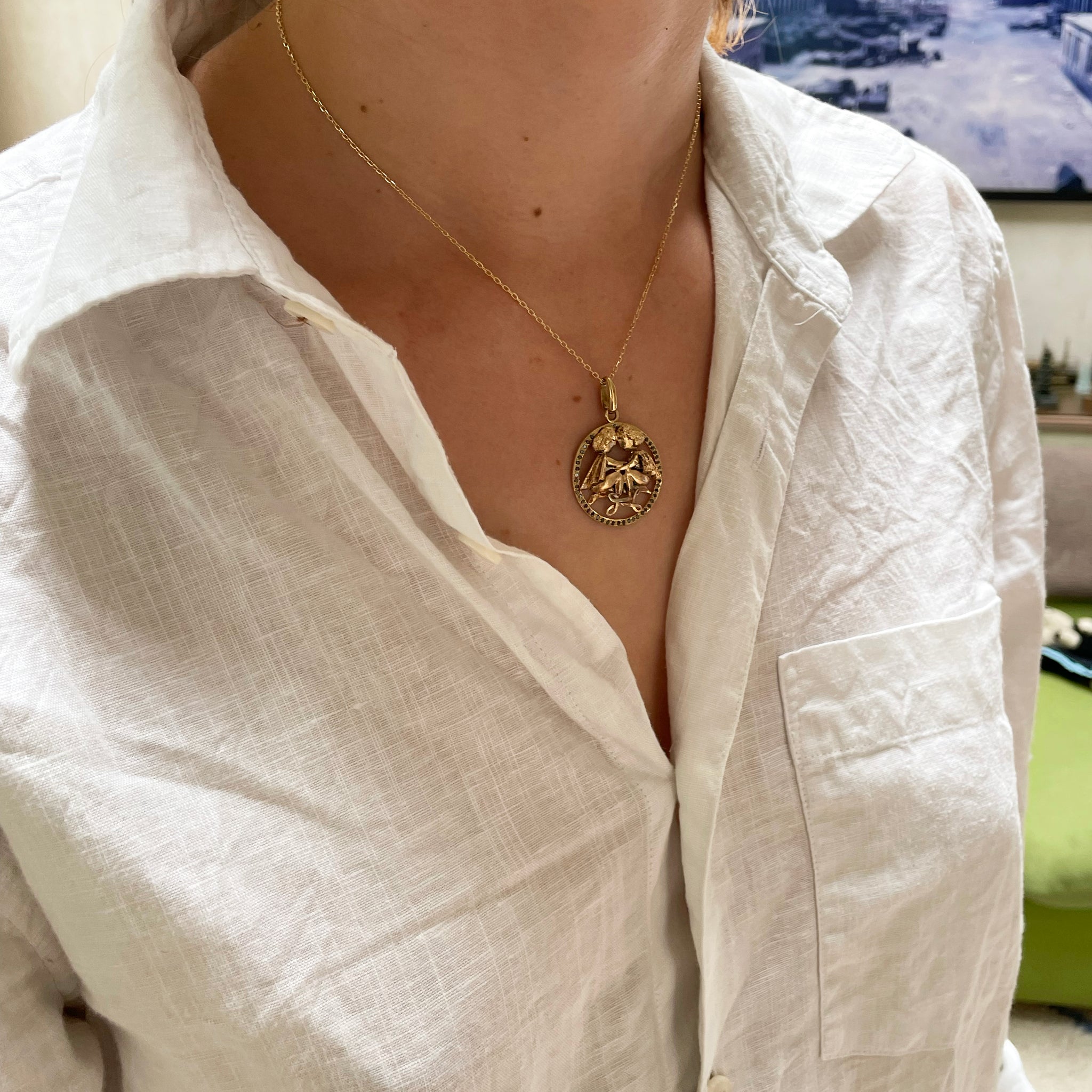 Vintage 9ct Gold Gemini Pendant Charm with Black Diamonds