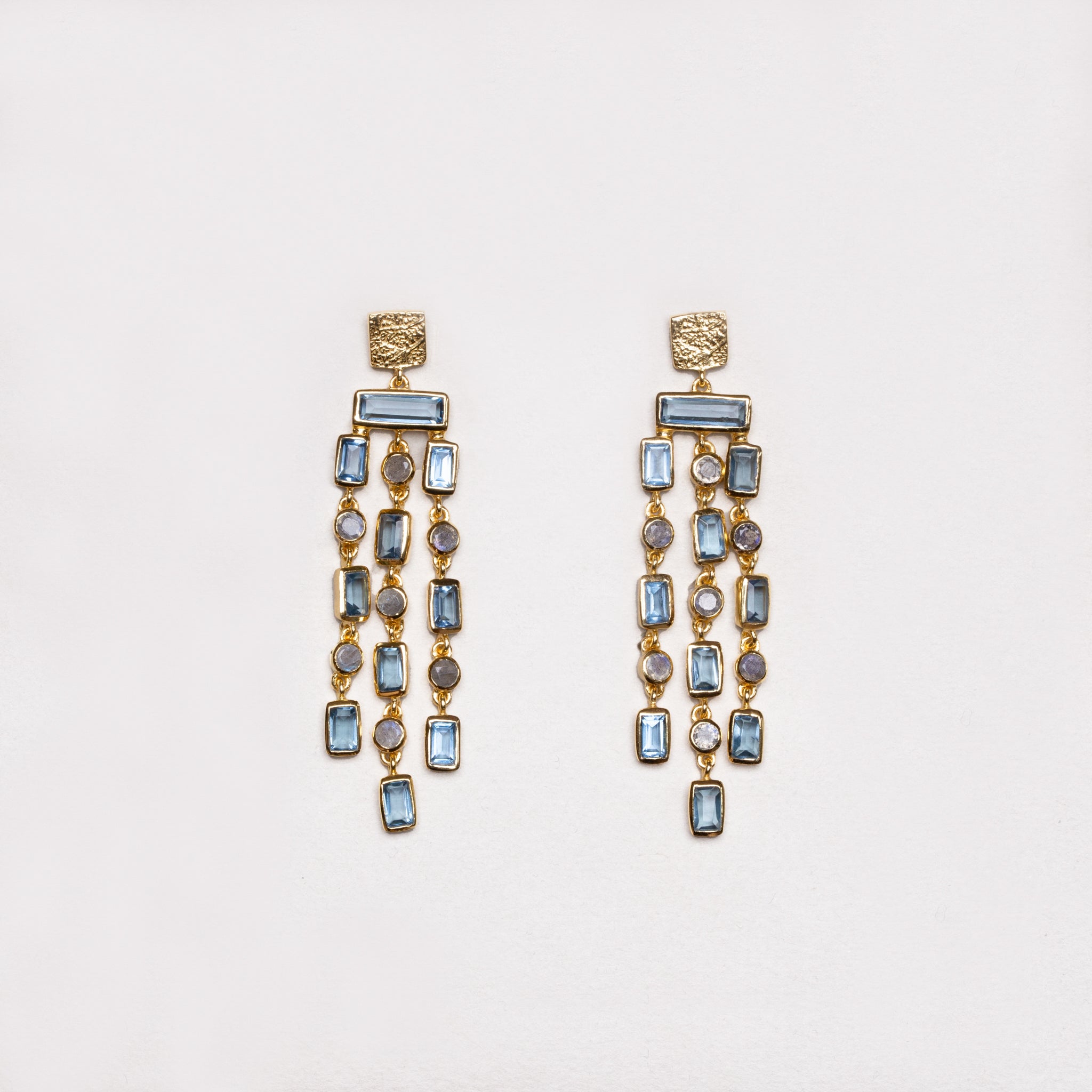 Triple Row Chandelier Earrings with Kyanite and Labradorite