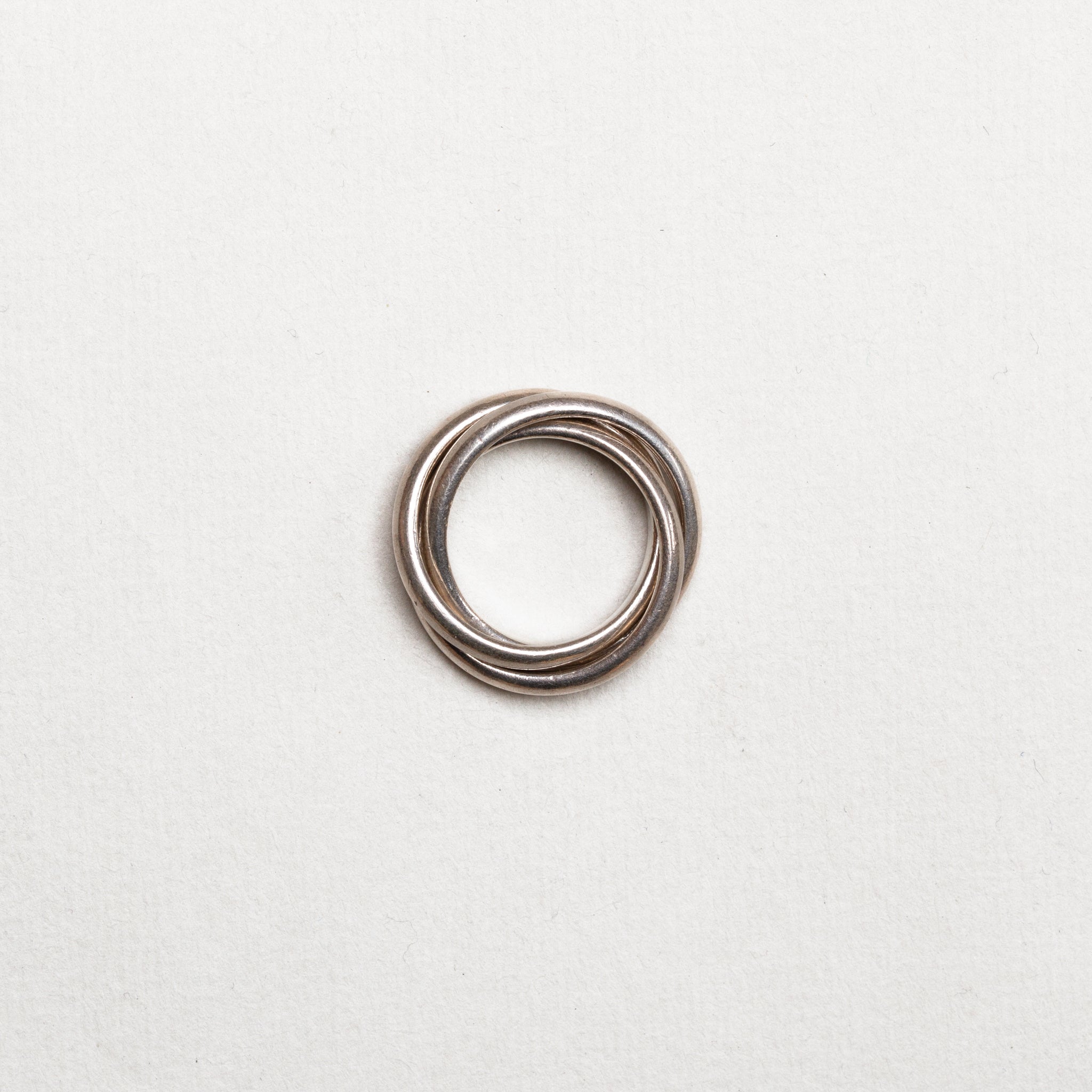 This vintage Tiffany & Co. trinity ring features three interlocking bands in sterling silver, creating a fluid and timeless silhouette.